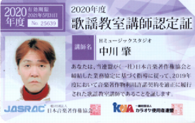 カラオケ使用者連盟・会員 音楽著作権協会・JASRACから認定されている歌謡教室です。